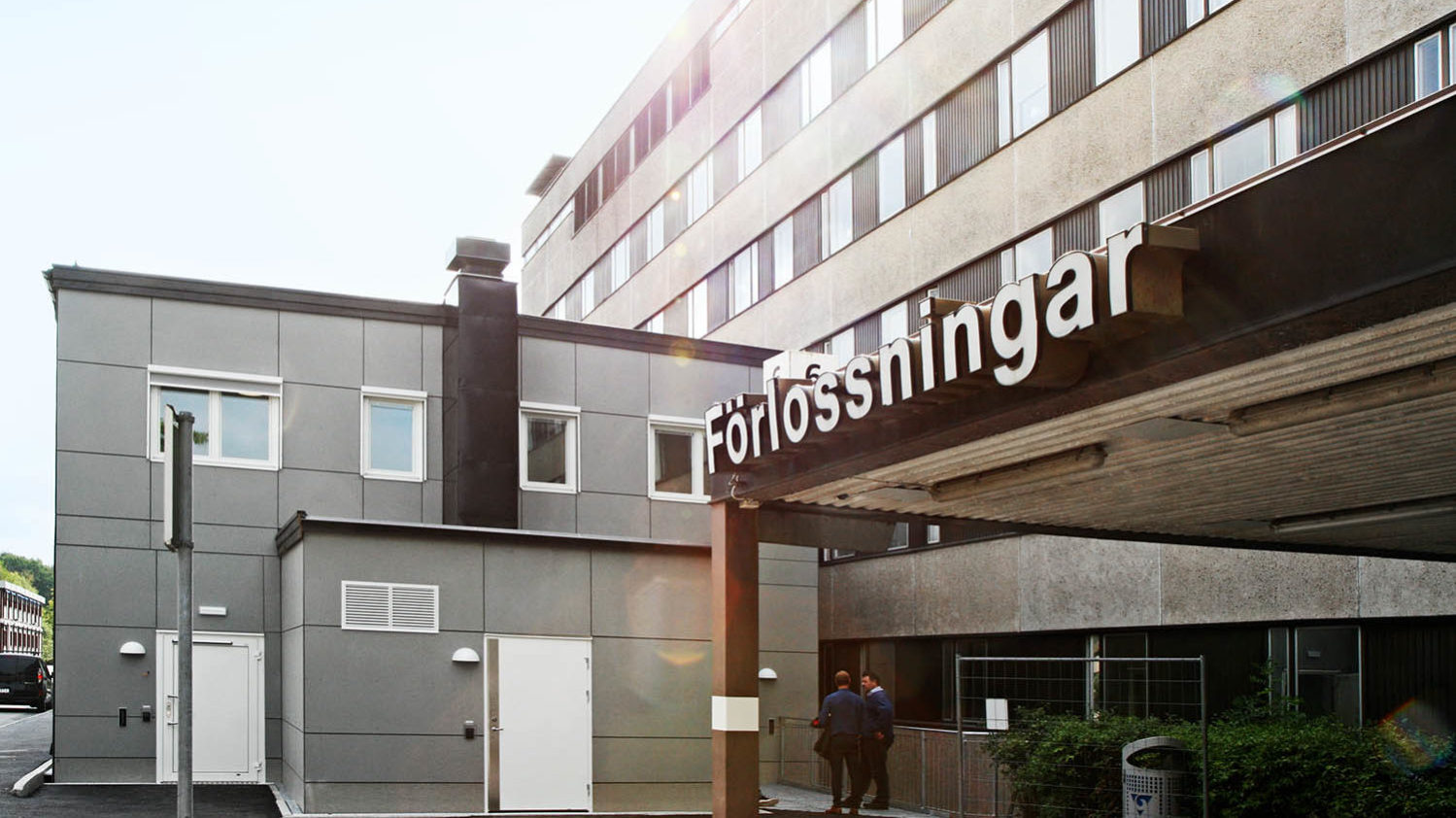 Östra sjukhuset i Göteborg hyr för närvarande två tillfälliga byggnader från Expandia. Kirurgmottagningen har haft full verksamhet i Expandias moduler sedan 2014 med utökning våren 2017, och sedan en vecka tillbaka har förlossningsavdelningen utökat sina lokaler med en ny paviljong. Nu finns all förlossningsvård i Göteborgsområdet samlad på Östra sjukhuset. – Det är en viktig satsning som stärker vården kring förlossningen. Tillsammans med vårt triagesystem innebär det att vi blir ledande i landet på akutsjukvård för gravida. Tidigare tog vi emot akuta och planerade besök på samma mottagningar. Nu får vi en renodlad akutverksamhet, som dessutom ligger i direkt anslutning till förlossningen, säger Nils Crona, verksamhetschef för obstetrik på Sahlgrenska Universitetssjukhuset. I och med den nya paviljongen erbjuds åtta kompletterande BB-rum och två förlossningsrum. Det innebär att det nu finns lika många förlossningsvårdsplatser som innan delar av verksamheten flyttade från Mölndal. En skillnad är att fler BB-rum än tidigare är familjerum. – Det har varit en brist hos oss. Vi har inte fler rum nu än tidigare, men de är bättre. Vi vill kunna erbjuda patienterna, särskilt våra förstföderskor, rum där de får vara tillsammans med enbart sin familj. Samtidigt arbetar vi fortfarande för att friska omföderskor ska välja att gå hem på Trygg hemgång, det vill säga att åka hem 6–8 timmar efter förlossningen med stöd av barnmorska, säger Nils Cron Sjukhusmiljöer har väldigt höga och krav, både vad gäller att klara av en steril miljö, hårda tillgänglighetskrav och även larm och kallelsesystem som i detta fall integreras med befintliga system. Till Östra sjukhuset byggdes specialmoduler för att tillgodose kraven men de är i grunden baserade på Expandias K2000-moduler. De två byggnaderna består totalt av 26 st. moduler i två våningar och har fasadskivor i grått kompositmaterial för att passa in med övriga byggnader i området. https://www.sahlgrenska.se/nyheter/nyheter/ny-akut-for-gravida-och-nyforlosta/